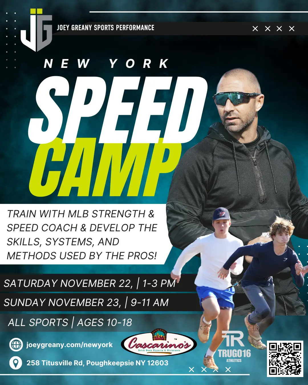 Train with MLB Strength & Speed Coach Joey Greany and develop the skills, systems and methods used by the pros. All Soprts are Welcome. For Ages 10-18 at Golds Gym Lagrange. All athletes receive an official camp t-shirt.